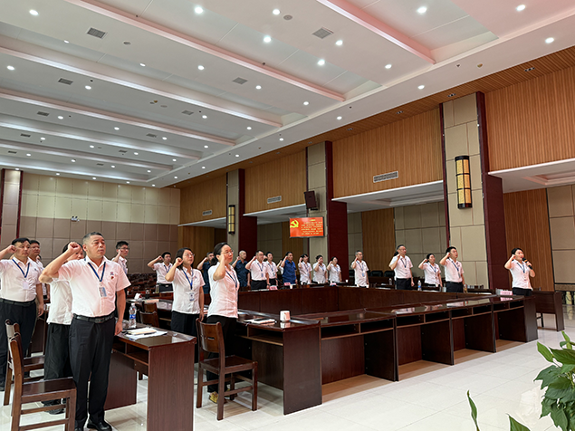 齐唱国歌,重温誓词,在350vip浦京党委副书记、资金管理部经理万善武的带领下,新发展党员罗雄、张然等3人上台庄严宣誓,感受作为一名新党员神圣而激动人心的时刻。随后,350vip浦京行管支部书记、工会主席熊海娟领誓,全体老党员重温入党誓词,以铿锵誓言叩问入党初心,以坚定信念强化责任担当。